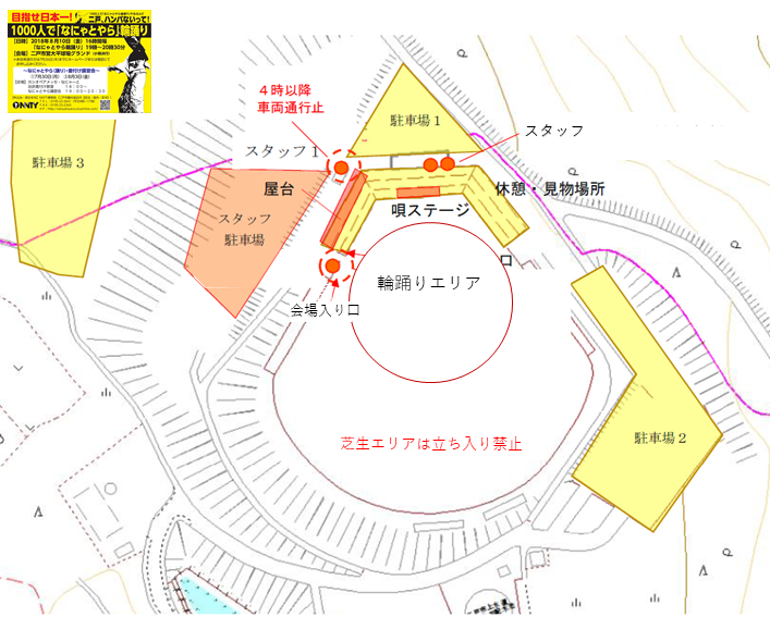 | 詳細 | ①大規模会場における参加型なにゃとやら輪踊り大会